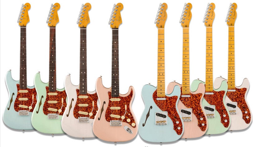 Fender présente une édition limitée remarquable de la série American Professional II sous la forme d'une Stratocaster Thinline et d'une Telecaster Thinline. Ces modèles particulièrement stylés sont fabriqués à partir d'un corps semi-hollow body en frêne doté d'une élégante ouïe en forme de f.