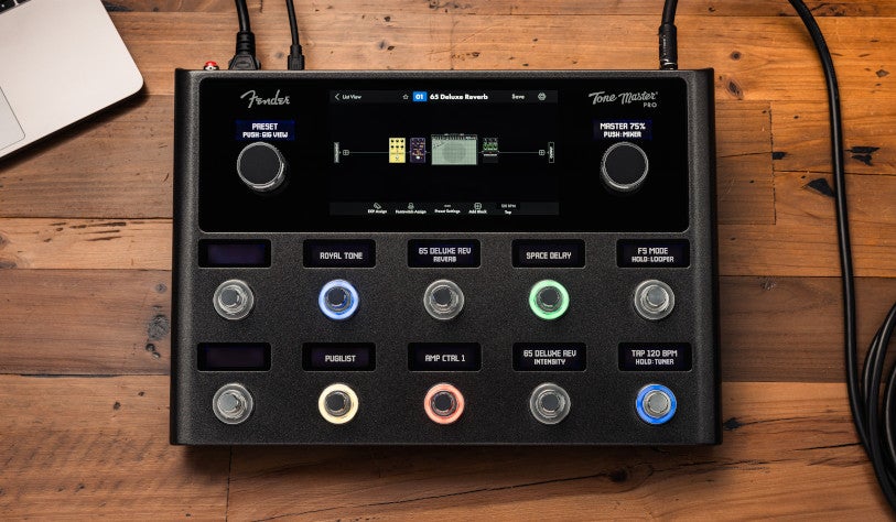 Un autre aspect important faisant de ce Fender Tone Master Pro une option intéressante est sa facilité d'utilisation. Vous avez donc accès à un écran couleur tactile de 7 pouces, à 10 footswitches et à toutes les entrées et sorties imaginables pour une intégration parfaite à votre équipement sur scène ou en studio. Au moment de sa sortie, plus de 100 modèles d'amplis et d'effets sont disponibles, dont le premier modèle EVH 5150 III Stealth sous licence officielle. Naturellement, vous pouvez créer vos propres rigs ou passer directement à l'action avec l'un des 500 presets intégrés, et accéder à des milliers d'autres à partir du cloud grâce à l'appli Tone Master Pro Control.