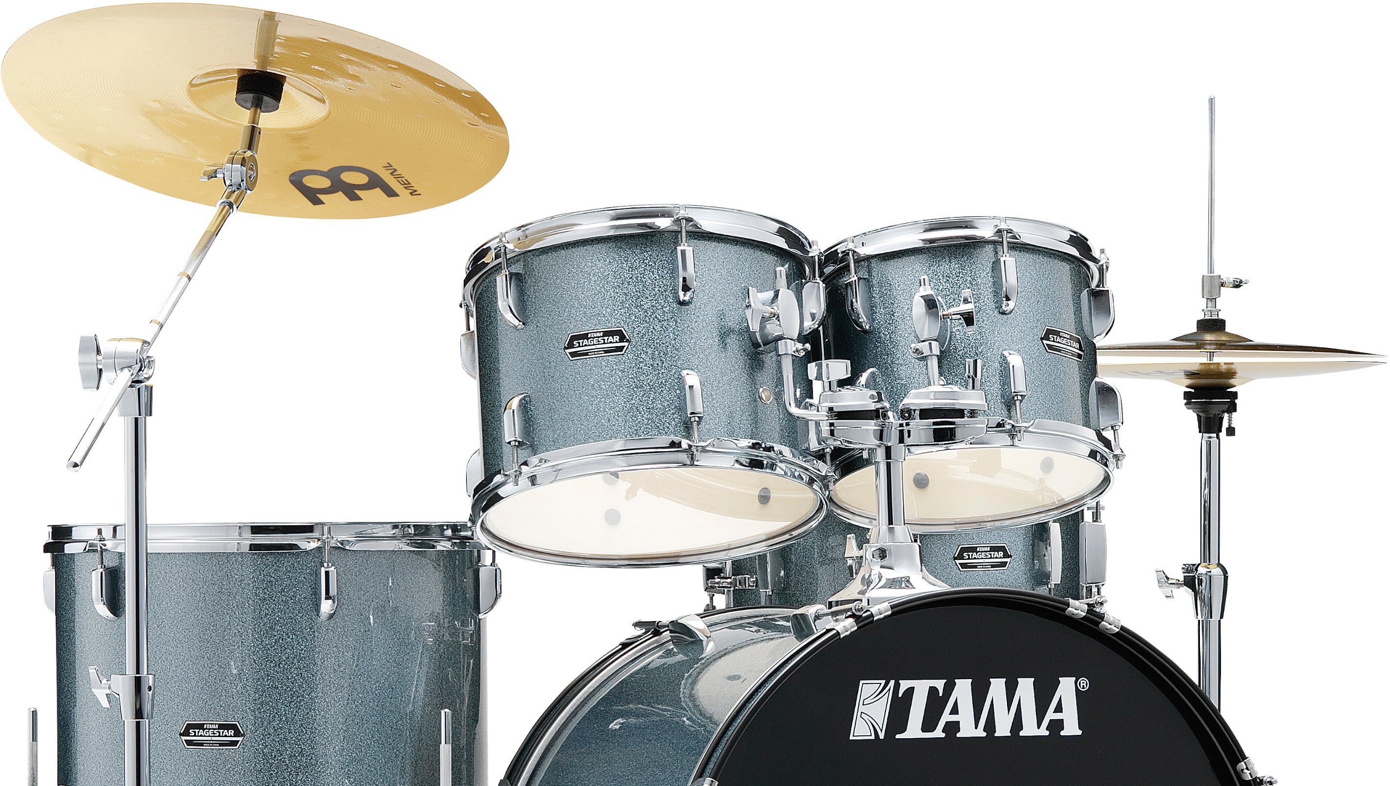 Batteries d'entrée de gamme Tama StagestarAvec plus de 40 années d'expérience, Tama connaît mieux que quiconque les attentes et les besoins des batteurs. Avec la Stagestar, Tama lance une nouvelle série offrant tout le nécessaire aux batteurs débutants, et surtout proposée à un prix très abordable. Grâce à de nouvelles caractéristiques intéressantes, telles que le support de tom Omni-ball qui offre une plus grande liberté de mouvement lors de l'ajustement de la position de vos toms, et un pied robuste à double embase qui assure la stabilité de vos cymbales. Sans oublier les cymbales incluses : une charleston Meinl BCS Brass de 14 pouces et une cymbale crash-ride Meinl BCS Brass de 18 pouces. Les batteries sont disponibles en deux configurations différentes, chacune étant disponible en trois couleurs. La plus petite configuration comprend une grosse caisse de 20 pouces et un tom basse de 14 pouces, et la plus grande (rock) comprend une grosse caisse de 22 pouces et un tom basse de 16 pouces. Les trois couleurs disponibles sont les suivantes : Black Night Sparkle, Candy Red Sparkle et Sea Blue Mist.