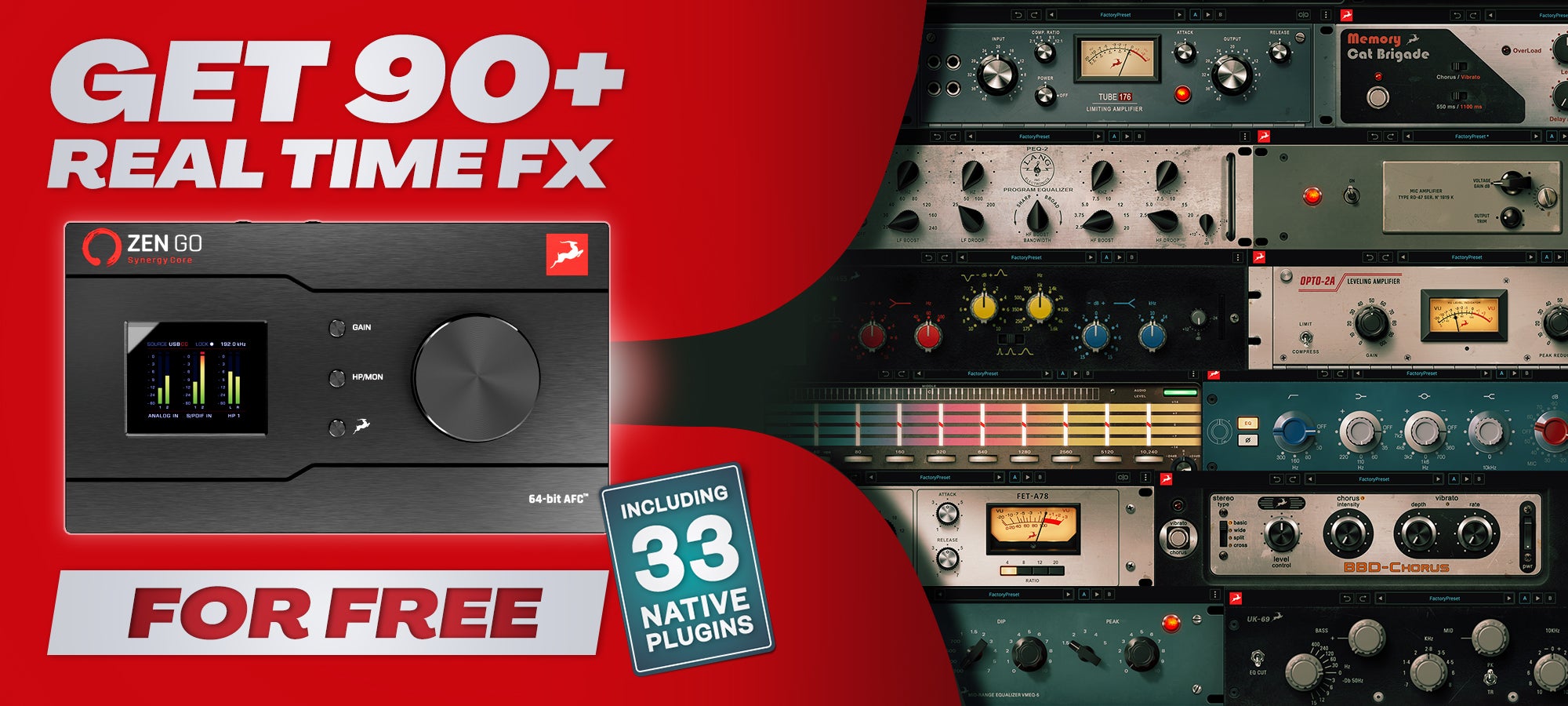 Quelles sont les interfaces concernées par la promo ?Les interfaces audio suivantes d'Antelope Audio font partie de cette opération : Zen Go USB Synergy Core, Zen Go Thunderbolt Synergy Core, Zen Q USB Synergy Core, Zen Q Thunderbolt Synergy Core, Zen Tour Synergy Core, Orion Studio Synergy Core, Discrete 4 Pro Synergy Core et Discrete 8 Pro Synergy Core. Donc, lorsque vous achetez une de ces interfaces durant la période promotionnelle, c'est-à-dire jusqu'au 30 septembre 2023, vous obtenez 90 AFX en temps réel avec cette interface. Ces plug-ins fonctionnent à partir des puces FPGA et DSP de ces interfaces. De plus, vous avez droit à une année complète d'adhésion au programme Synergy Core Native, ce qui signifie que vous pouvez charger n'importe quel plug-in natif dans n'importe quel DAW et que de nouveaux plug-ins sortent régulièrement que vous pouvez directement utiliser dans vos propres productions musicales. Comment ça marche ?C'est très simple : vous achetez une ou plusieurs des interfaces mentionnées ci-dessus et vous créez un compte sur le site d'Antelope Audio. Vous pouvez ensuite activer les plug-ins à l'aide de l'Antelope Launcher pendant le processus d'activation au moment où vous avez connecté et installé votre interface sur votre ordinateur. Dans l'espace utilisateur du site d'Antelope Audio, choisissez l'onglet "My Offers" et accédez à l'abonnement Synergy Core Native. Veuillez noter que vous pouvez enregistrer votre interface audio au plus tard le 15 octobre 2023 !