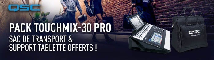La Touchmix-30 Pro signée QSC est une véritable révolution dans le monde des consoles numériques. Bonne nouvelle : elle est temporairement livrée accompagnée d'un support de tablette TS-1 et d'un sac de transport Tote ! Ainsi, vous disposez d'un set tout à fait complet pour vous mettre directement au travail !