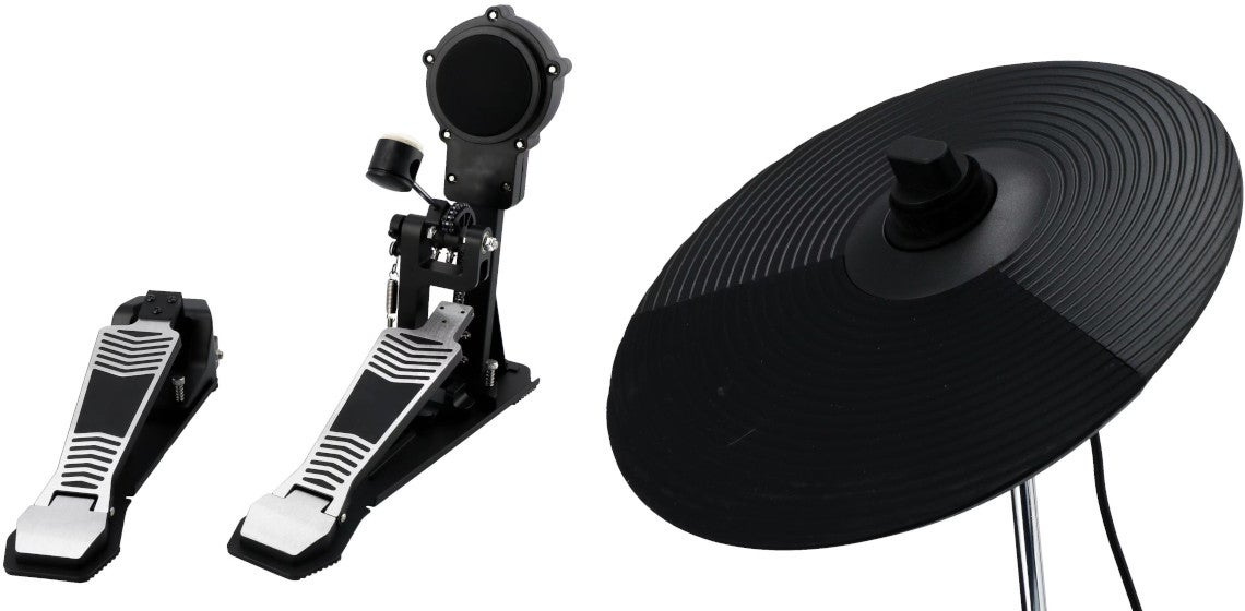 DDK-020 et DDK-040 : configuration de baseLes deux kits sont presque identiques, à quelques petites différences près. Commençons par le kit DDK-020. Ce dernier est proposé à un prix bas et offre tout ce dont le batteur en herbe aura besoin. Il permet au débutant de découvrir tous les aspects essentiels de l'instrument. Peaux mailléesLe châssis en H et les connecteurs robustes forment la base des cymbales et des fûts que l'on retrouve normalement sur une batterie acoustique professionnelle. Les pads de cymbale d'une batterie électronique sont fabriqués en plastique et revêtus de caoutchouc là où la baguette entre en contact avec le pad. Vous pouvez donc frapper aussi fort que vous voulez sans embêter vos voisins ! Les fûts en bois d'une batterie acoustique sont remplacés par des pads avec des peaux maillées, ce qui est rare dans cette gamme de prix. Ces peaux silencieuses offrent plus ou moins la même sensation de rebond qu'offre une vraie peau de batterie. Le DDK-020 se compose de deux toms, d'un tom basse, d'une caisse claire, d'une pédale de déclenchement de grosse caisse, d'une cymbale charleston avec pédale de charleston et d'une cymbale crash + ride. Bref, tout ce que l'on retrouve également sur une batterie standard mais plus compact et moins bruyant. Vos voisins vont apprécier !