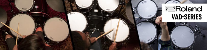 La série VAD de Roland se compose pour le moment de trois batteries. Vous avez le choix entre les modèles VAD506, VAD503 et VAD306. Quelles sont les principales différences ? La batterie VAD506 est en quelque sorte le modèle "phare". Vous bénéficiez d'une configuration complète comprenant 3 toms et 4 pads de cymbale. La batterie VAD503 possède un tom et un pad crash de moins. Ces deux batteries sont cependant équipées du module TD-27 et de l'impressionnante cymbale ride CY-18DR de 18 pouces. La batterie VAD306 est le set le plus économique avec des fûts un peu plus petits. Ici, vous avez 3 toms, 4 pads de cymbale et un module TD-17, il ne manque que la ride CY-18DR.