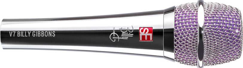 Vous recherchez un micro qui sort de l'ordinaire ? Dans ce cas, ce micro dynamique SE Electronics V7 Signature Billy F. Gibbons devrait vous plaire ! Réalisé en collaboration avec le chanteur des ZZ Top, il affiche un design bien à lui mêlant un corps chromé à une bonnette anti-vent violette.
