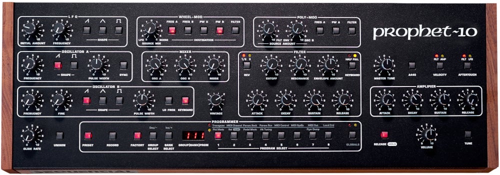 Prophet au format moduleLa photo ci-dessus illustre le Prophet-10 Desktop dont le design est identique à celui de la version Prophet-5 Desktop. Les deux modèles ne diffèrent qu'au niveau de la polyphonie. Dans les années 80, le Prophet-5 fût utilisé par de nombreux artistes connus tels que Depeche Mode et Duran Duran. Le Prophet-10, par contre, est plus rare. Le Prophet-10 est simplement l'empilement magnifique de deux Prophet 5. Son apparence unique et le nombre limité d'exemplaires disponibles font du P10 un véritable objet de collection. Si vous n'attachez pas une grande importance au look imposant du Prophet 10 ou vous possédez déjà un clavier MIDI de qualité, le P10 Desktop ou le P5 Desktop au format module devrait sérieusement vous intéresser. Ces versions sont entièrement analogiques et pourvues de connexions MIDI et USB-MIDI pour répondre aux exigences de l'utilisateur moderne. Marques associéesProduits associés |