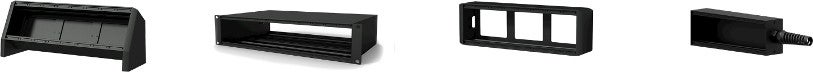 Les châssis sont disponibles dans différentes versions en terme de taille, de montage et de profondeur et peuvent loger 2 à 12 plaques de connexion. Les baies de bureau par exemple, sont idéales pour être installées sur une table et trouveront parfaitement leur place dans un studio ou une salle de réunion. Elles peuvent être montées sur, sous et dans la table et sont disponibles en différentes largeurs. Les racks à châssis 19 pouces peuvent accueillir 12 modules et sont disponibles en différentes profondeurs. Les racks muraux, eux, sont dotés d'un joli boîtier en aluminium noir et peuvent être fixés au mur pour ainsi économiser de l'espace au sol. Ces baies de rackage murales sont disponibles dans différentes tailles. Les châssis de type stagebox, enfin, peuvent être personnalisés à l'aide de plaques de connexion séparées. Un support en plastique au niveau de l'entrée permet la gestion des câbles.